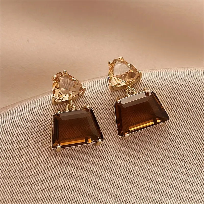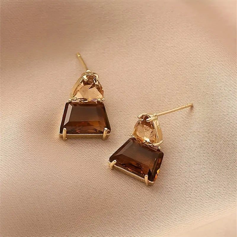 Elevate your style with our Dainty Yellow and Auburn Earrings. These Japanese & Korean-inspired earrings feature elegant brown faux crystals that add a touch of sophistication to any outfit. Made with high-quality 14k gold plating, they are both durable and long-lasting. With a secure closure, they are easy to wear and perfect for enhancing your overall look.