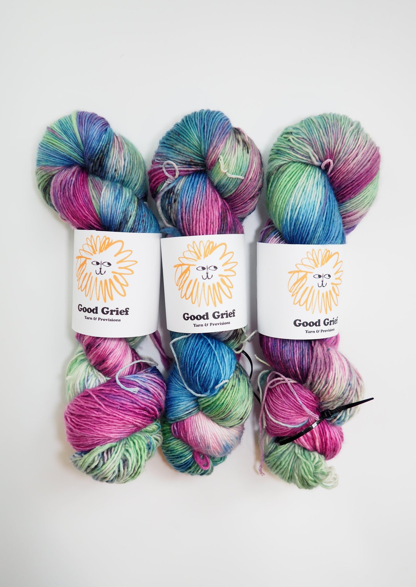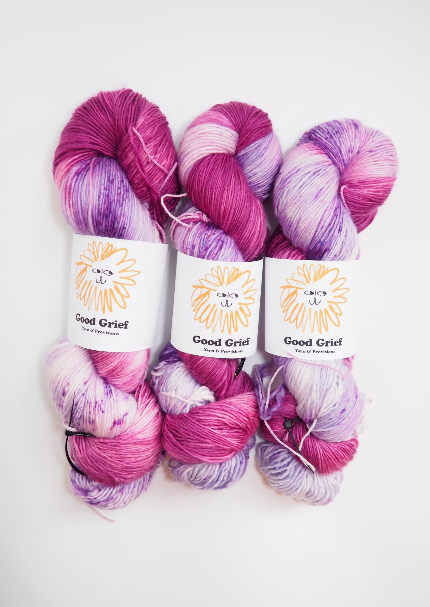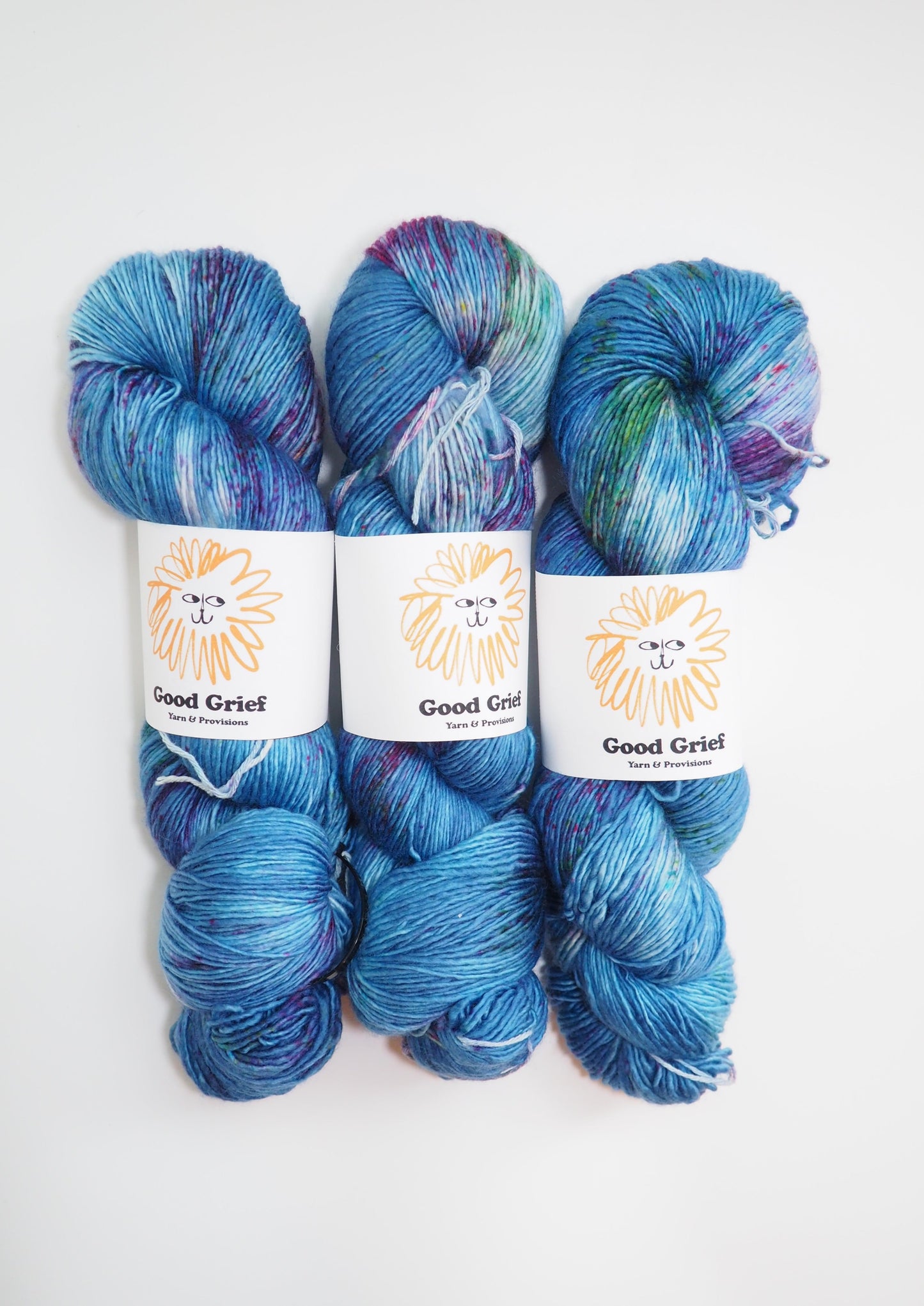 Hand-dyed by Good Grief's owner, Mariah. Every skein is dyed with the utmost care, but please allow for small differences from batch to batch.