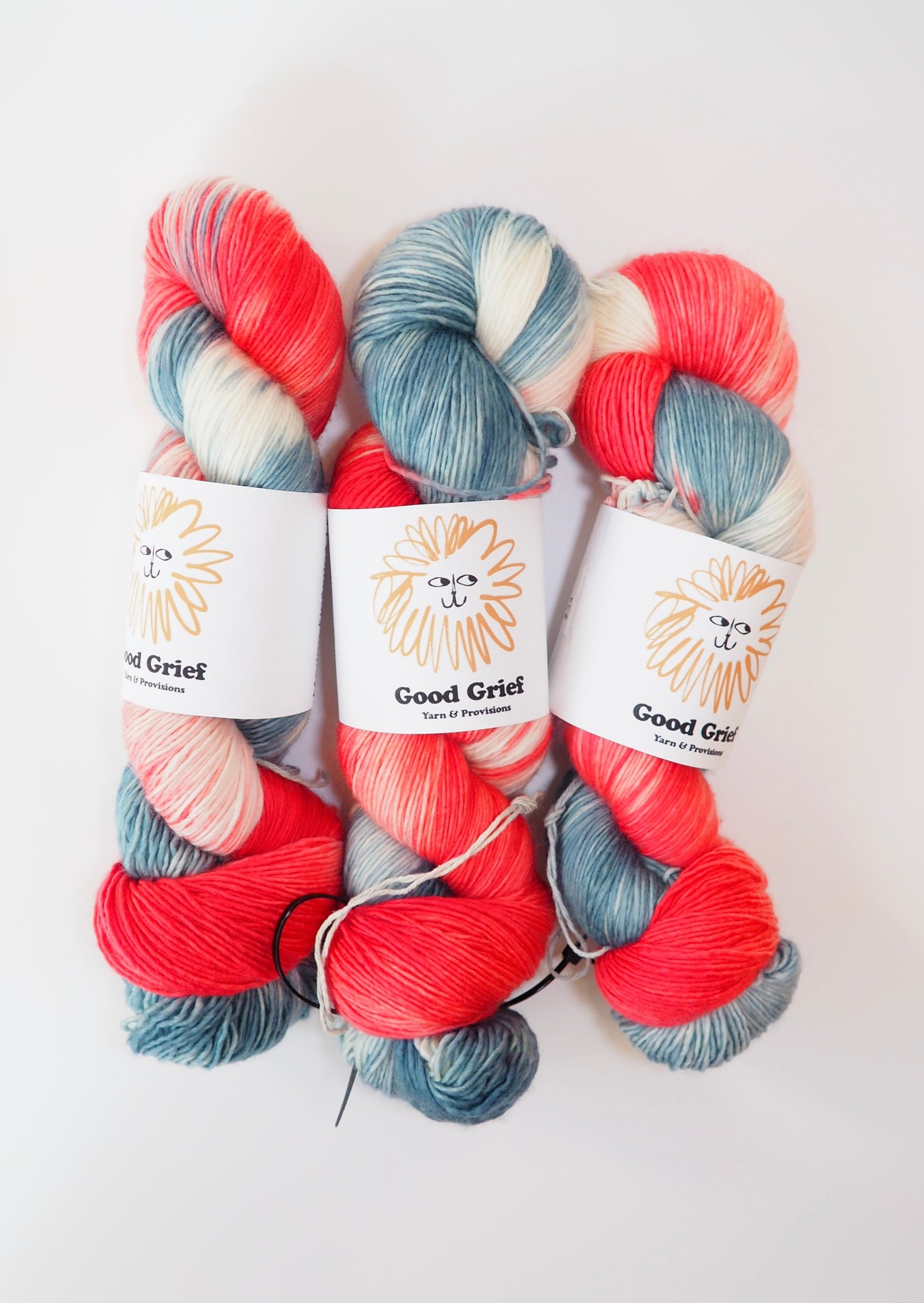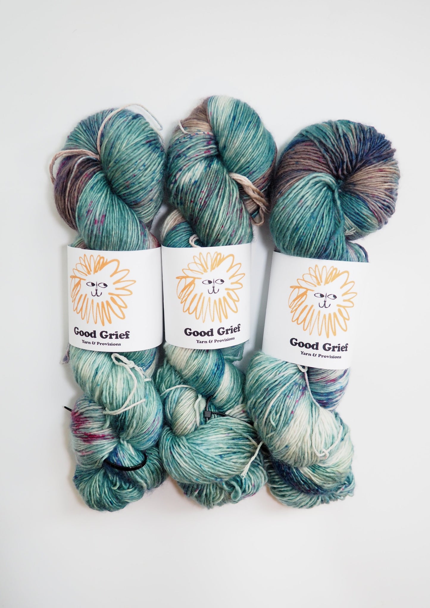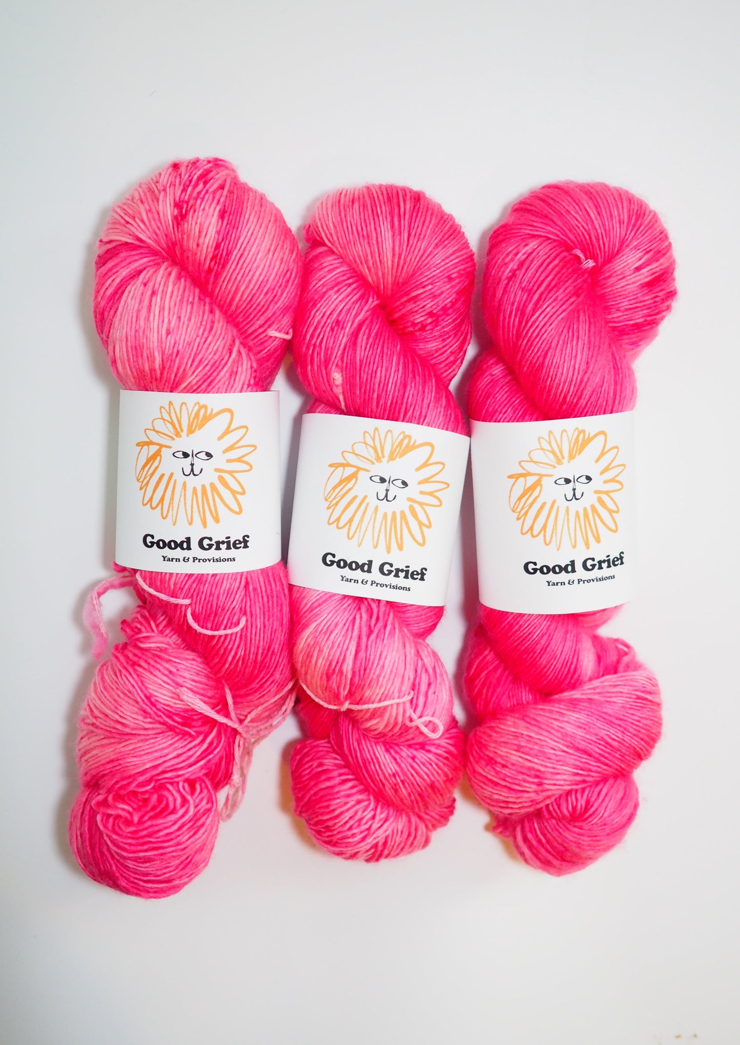 Hand-dyed by Good Grief's owner, Mariah. Every skein is dyed with the utmost care, but please allow for small differences from batch to batch.