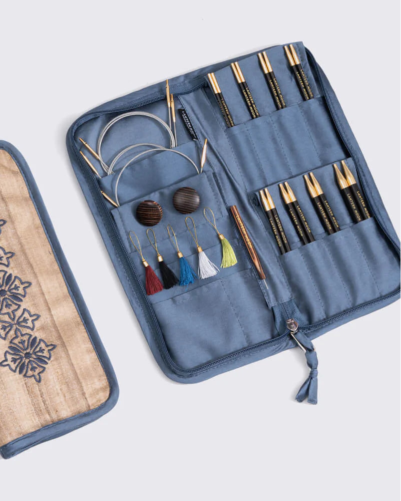 The Glory interchangeable knitting needles set is designed for the ultimate knitting luxury for all kinds of projects and yarns. Hand-crafted from the finest ebony wood, the 8 pairs of 5" (13 cm) long needles come in a range of sizes from US 2.5 - 11 ( 3.5 - 11 mm). The beautiful embroidered Khadi soft silk case keep your needles safe and organized.