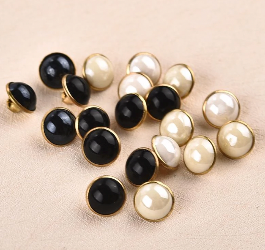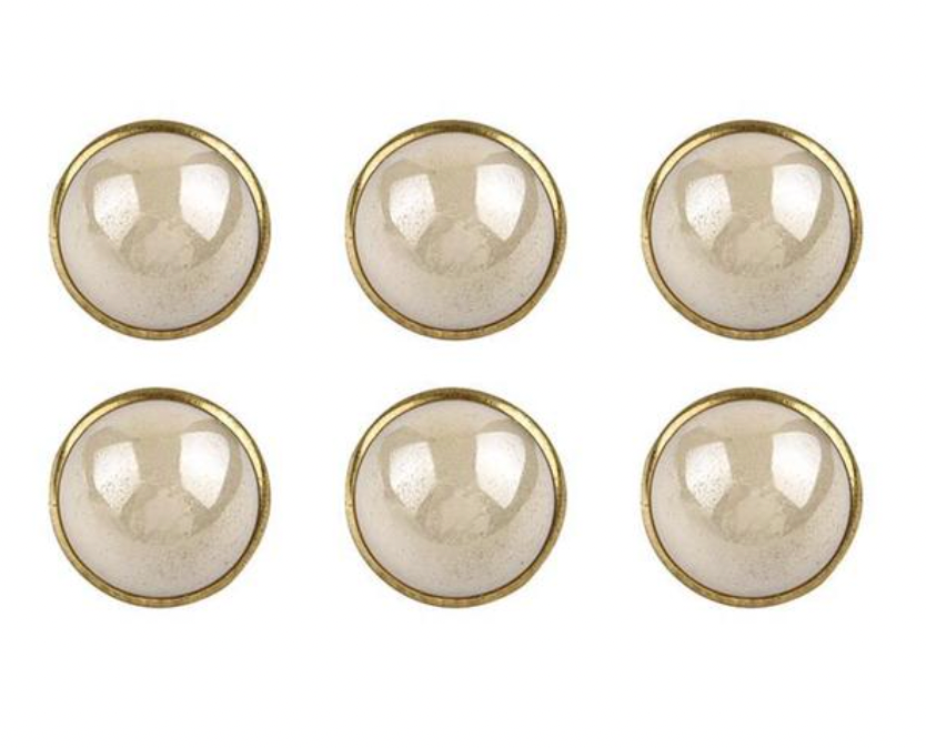 These resin buttons resemble pearls. They are 10mm in diameter.